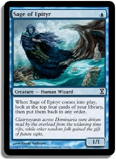 When Sage of Epityr comes into play, look at the top four cards of your library, then put them back in any order.