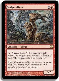 All Slivers have "This creature gets +1/+1 as long as you control a Swamp" and "B: Regenerate this creature."
