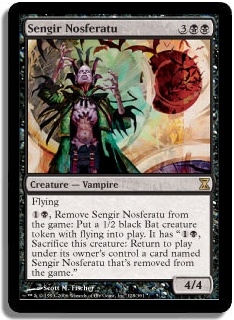 Flying 1B, Remove Sengir Nosferatu from the game: Put a 1/2 black Bat creature token with flying into play. It has "1B, Sacrifice this creature: Return to play under its owner's control a card named Sengir Nosferatu that's removed from the game."