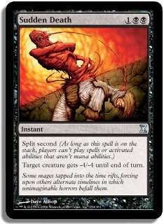 Split second (As long as this spell is on the stack, players can't play spells or activated abilities that aren't mana abilities.) Target creature gets -4/-4 until end of turn.