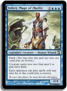 Flash (You may play this spell any time you could play an instant.) Creature cards you own that aren't in play have flash. Each opponent can play spells only any time he or she could play a sorcery.