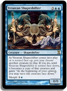 As Vesuvan Shapeshifter comes into play or is turned face up, you may choose another creature in play. If you do, until Vesuvan Shapeshifter is turned face down, it becomes a copy of that creature and gains "At the beginning of your upkeep, you may turn this creature face down." Morph 1U