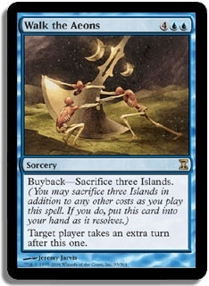 Buyback-Sacrifice three Islands. (You may sacrifice three Islands in addition to any other costs as you play this spell. If you do, put this card into your hand as it resolves.) Target player takes an extra turn after this one.