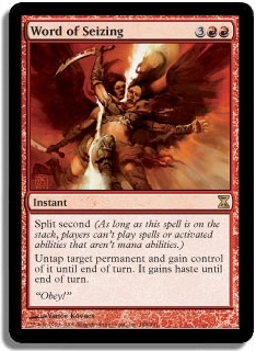 Split second (As long as this spell is on the stack, players can't play spells or activated abilities that aren't mana abilities.) Untap target permanent and gain control of it until end of turn. It gains haste until end of turn.