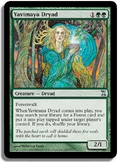 Forestwalk When Yavimaya Dryad comes into play, you may search your library for a Forest card and put it into play tapped under target player's control. If you do, shuffle your library.