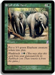Put a 3/3 green Elephant creature token into play. Flashback 3G (You may play this card from your graveyard for its flashback cost. Then remove it from the game.)