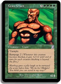 Trample Rampage 2 (Whenever this creature becomes blocked, it gets +2/+2 until end of turn for each creature blocking it beyond the first.)