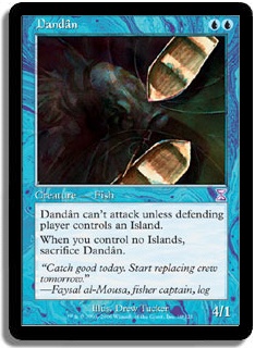 Dandan can't attack unless defending player controls an Island. When you control no Islands, sacrifice Dandan.