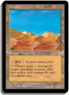 T Add 1 to your mana pool. T Desert deals 1 damage to target attacking creature. Play this ability only during the end of combat step.
