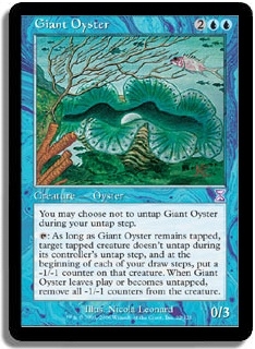 You may choose not to untap Giant Oyster during your untap step. T As long as Giant Oyster remains tapped, target tapped creature doesn't untap during its controller's untap step, and at the beginning of each of your draw steps, put a -1/-1 counter on that creature. When Giant Oyster leaves play or becomes untapped, remove all -1/-1 counters from the creature.