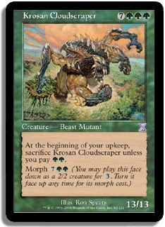At the beginning of your upkeep, sacrifice Krosan Cloudscraper unless you pay GG. Morph 7GG (You may play this face down as a 2/2 creature for 3. Turn it face up any time for its morph cost.)