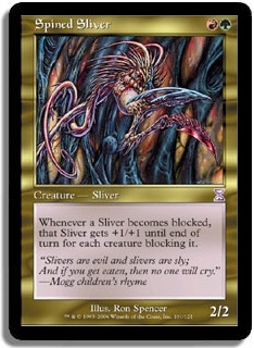 Whenever a Sliver becomes blocked, that Sliver gets +1/+1 until end of turn for each creature blocking it.