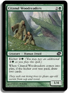 Kicker 2G (You may pay an additional 2G as you play this spell.) When Citanul Woodreaders comes into play, if the kicker cost was paid, draw two cards.