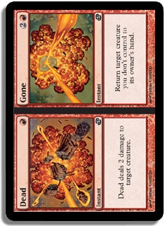 Dead deals 2 damage to target creature. / Return target creature you don't control to its owner's hand.