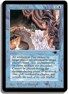 All artifacts in play owned by target player are returned to that player's hand.