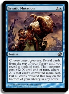 Choose target creature. Reveal cards from the top of your library until you reveal a nonland card. That creature gets +X/-X until end of turn, where X is that card's converted mana cost. Put all cards revealed this way on the bottom of your library in any order.