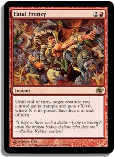 Until end of turn, target creature you control gains trample and gets +X/+0, where X is its power. Sacrifice it at end of turn.
