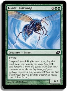 Flying Suspend 4-1G (Rather than play this card from your hand, you may pay 1G and remove it from the game with four time counters on it. At the beginning of your upkeep, remove a time counter. When the last is removed, play it without paying its mana cost. It has haste.)