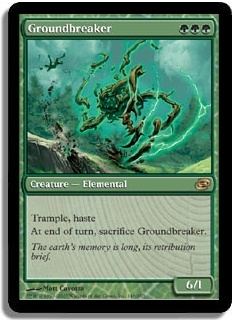 Trample, haste At end of turn, sacrifice Groundbreaker.
