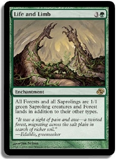 All Forests and all Saprolings are 1/1 green Saproling creatures and Forest lands in addition to their other types.