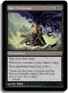 Skip your draw step. Whenever you play a card, draw a card. Your maximum hand size is two.