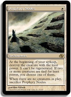 At the beginning of your upkeep, destroy the creature with the least power. It can't be regenerated. If two or more creatures are tied for least power, you choose one of them. When there are no creatures in play, sacrifice Porphyry Nodes.