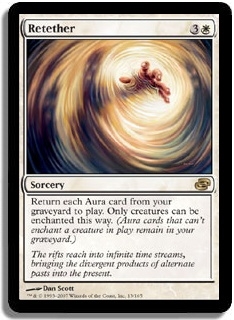 Return each Aura card from your graveyard to play. Only creatures can be enchanted this way. (Aura cards that can't enchant a creature in play remain in your graveyard.)