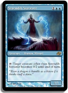 T Target creature other than Serendib Sorcerer becomes 0/2 until end of turn.
