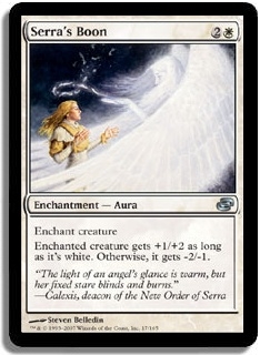 Enchant creature Enchanted creature gets +1/+2 as long as it's white. Otherwise, it gets -2/-1.