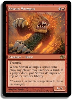 Trample When Shivan Wumpus comes into play, any player may sacrifice a land. If a player does, put Shivan Wumpus on top of its owner's library.
