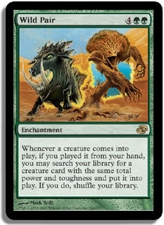Whenever a creature comes into play, if you played it from your hand, you may search your library for a creature card with the same total power and toughness and put it into play. If you do, shuffle your library.