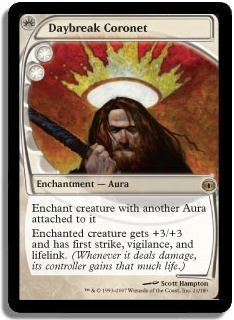 Enchant creature with another Aura attached to it Enchanted creature gets +3/+3 and has first strike, vigilance, and lifelink. (Whenever it deals damage, its controller gains that much life.)