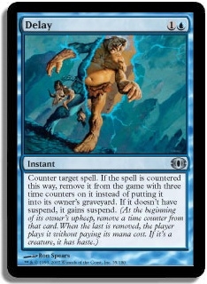 Counter target spell. If the spell is countered this way, remove it from the game with three time counters on it instead of putting it into its owner's graveyard. If it doesn't have suspend, it gains suspend. (At the beginning of its owner's upkeep, remove a counter from that card. When the last is removed, the player plays it without paying its mana cost. If it's a creature, it has haste.)