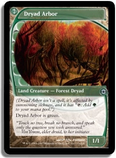 (Dryad Arbor isn't a spell, it's affected by summoning sickness, and it has "T Add G to your mana pool.") Dryad Arbor is green.
