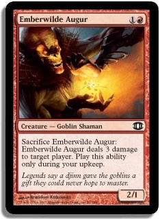 Sacrifice Emberwilde Augur: Emberwilde Augur deals 3 damage to target player. Play this ability only during your upkeep.