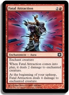 Enchant creature When Fatal Attraction comes into play, it deals 2 damage to enchanted creature. At the beginning of your upkeep, Fatal Attraction deals 4 damage to enchanted creature.
