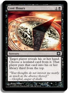 Target player reveals his or her hand. Choose a nonland card from it. That player puts that card into his or her library third from the top.