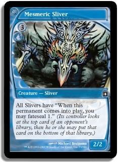 All Slivers have "When this permanent comes into play, you may fateseal 1." (Its controller looks at the top card of an opponent's library, then he or she may put that card on the bottom of that library.)