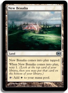 New Benalia comes into play tapped. When New Benalia comes into play, scry 1. (Look at the top card of your library, then you may put that card on the bottom of your library.) T Add W to your mana pool.
