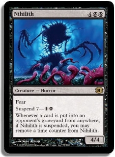 Fear Suspend 7-1B Whenever a card is put into an opponent's graveyard from anywhere, if Nihilith is suspended, you may remove a time counter from Nihilith.