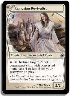 6, T Return target Rebel permanent card with converted mana cost 5 or less from your graveyard to play.