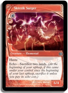 Haste Echo-Sacrifice two lands. (At the beginning of your upkeep, if this came under your control since the beginning of your last upkeep, sacrifice it unless you pay its echo cost.)