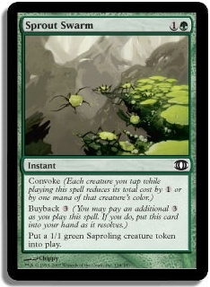Convoke (Each creature you tap while playing this spell reduces its total cost by 1 or by one mana of that creature's color.) Buyback 3 (You may pay an additional 3 as you play this spell. If you do, put this card into your hand as it resolves.) Put a 1/1 green Saproling creature token into play.