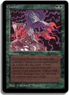 Until end of turn, you may add colorless mana to your mana pool at a cost of 1 life each. These additions are played with the speed of an interrupt. Effects that prevent damage may not be used to counter this loss of life.