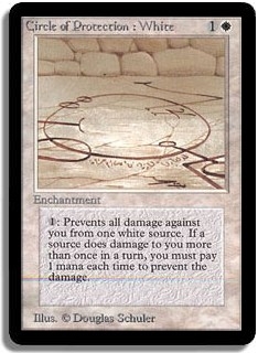 <1>: Prevents all damage against you from one white source. If a source does damage to you more than once in a turn, you must pay 1 mana each time you want to prevent the damage.