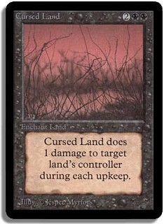 Cursed Land does 1 damage to target land's controller during each upkeep.
