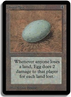 Whenever anyone loses a land, Egg does 2 damage to that player for each land lost.
