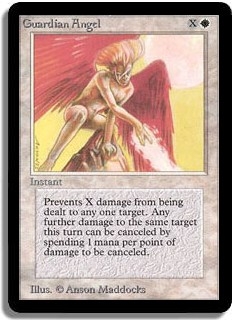 Prevents X damage from being dealt to any one target. Any further damage to the same target this turn can be canceled by spending 1 mana per point of damage to be canceled.