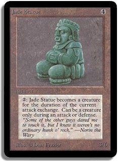 <2>: Jade Statue becomes a 3/6 creature for the duration of the current attack exchange. Can be a creature only during an attack or defense.