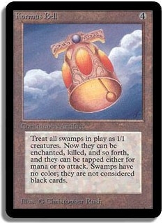 Treat all swamps in play as 1/1 creatures. Now they can be enchanted, killed, and so forth, and they can be tapped either for mana or to attack. Swamps have no color; they are not considered black cards.